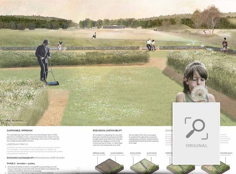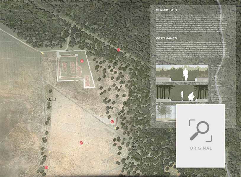 Rehwaldt Landscape Architects, BY Architects, Till Rehwaldt, Markéta Zdebská, Marek Žáček Spolupracující osoby : Garth Woolison, Markéta Kupková, Markéta Čáslavská Anotace návrhu Památník v Letech u Písku zvěčňuje vzpomínku na oběti holocaustu Romů a Sintů v Čechách a připomíná budoucím generacím kruté činy a omyly, k nimž došlo na tomto místě, za války i poté. Cesta paměti vytváří spojení mezi bývalým tzv. Cikánským táborem, stávajícím hřbitovem a novým kulturně-vzdělávacím centrem a vede návštěvníky po symbolické cestě minulostí a současností k nadějnější budoucnosti. |